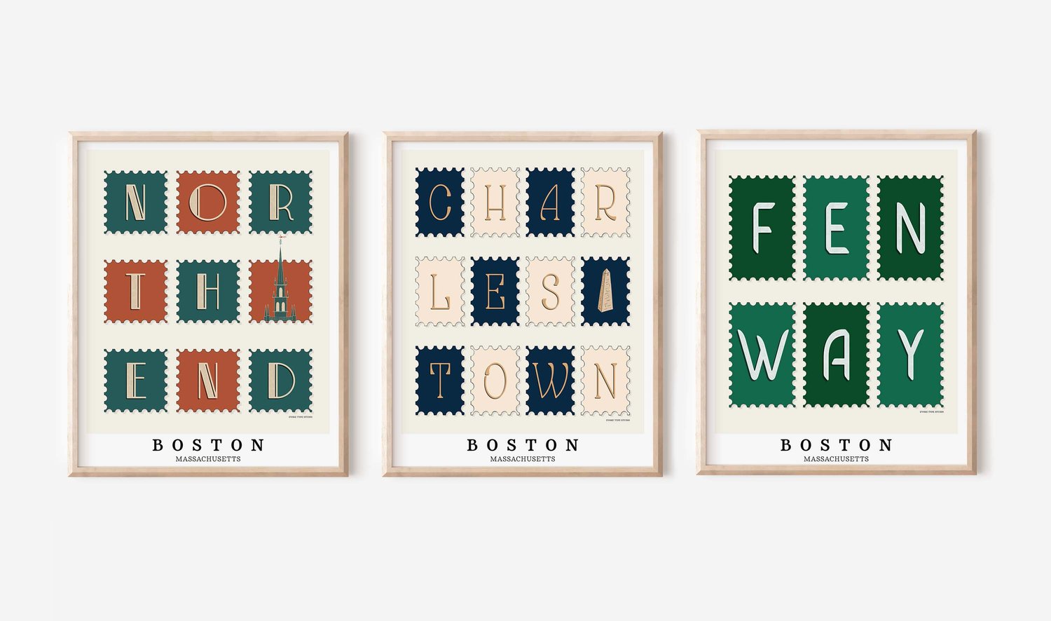 Check out the rest of the Postage Stamp Collection offerings for a set of matching artwork displaying your favorite Boston neighborhoods.