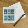 With a coastal color scheme of blue, green and beige, this notecard evokes the feel of the water surrounding Seattle.